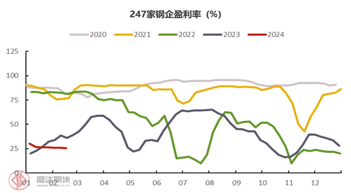 供给方面,2月铁矿全球发运量从全年来看处于偏少位置,但当前发运处于同期高位。主流矿山上期除FMG由于高基数影响出现环比下降,其余主流矿山均有明显增长。当前矿价仍远超主流生产地成本,在此情景下预计矿山发运量仍较充足。在考虑船期的情况下,到港量预计于2月末达到阶段性低位后开始回升至年内中性水平。
