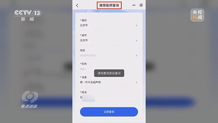 随后,记者在厂家的推荐医师栏进行了多信源查询,均没有查到这位医生的认证信息。而医生无法验真,至少说明该医生没有通过这个仪器厂家的培训。如此看来,医生验真也不靠谱,那还有“治疗头”验真呢?