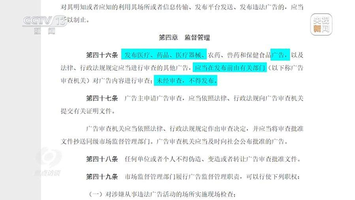 按照我国广告法第四十六条的规定,“发布医疗、药品、医疗器械等广告,应当在发布前由有关部门对广告内容进行审查;未经审查,不得发布。” 也就是说,医疗广告应当取得相应的《医疗广告审查证明》才能上线。但记者调查发现,这些医美直播带货作为一种医疗广告均未获得《医疗广告审查证明》。