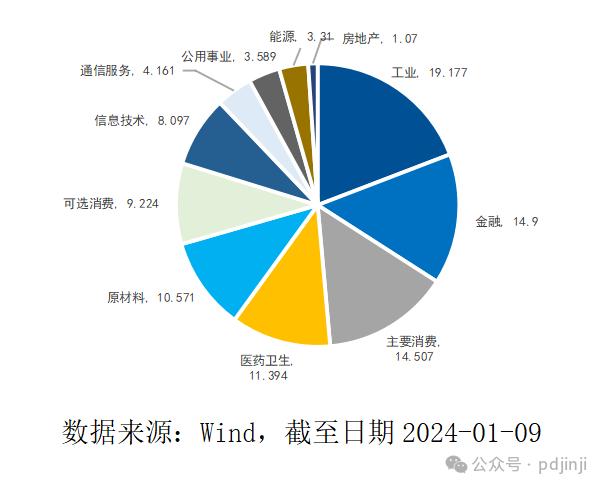 下图清晰地表明了中证A50指数成份股在中证一级行业中的分布情况(单位:%)