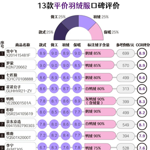 此次口碑评价按价格分为两个价位段:平价羽绒服(700元以下)、中高端羽绒服(700元及以上)。