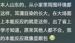 评论区三分之一的景象是其他省人在说自己懂不来一点,不想说也学不会这些话。另外三分之一是山东人在说这是天赋使然,常规发挥而已。