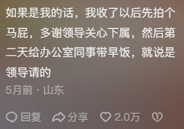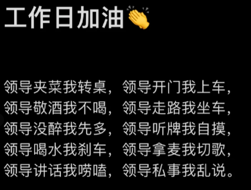 看了这回答的网友说自己连照着念都念不出口,只能脸上赔着笑,说句哪有哪有。一边压制住“请领导即刻传位于我”的心情,一边幻想着在领导耳边来一句“尊嘟假嘟”。