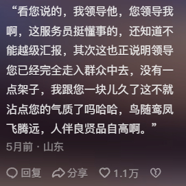 与此同时,跟打球赢领导那题一样,山东人对题目本身提出了不同意见。这个题首先小瞧山东服务员了,不会有那么没眼力价,把领导都认错。