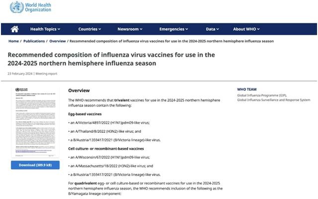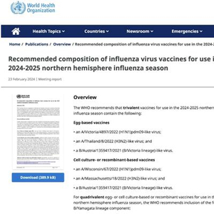 世卫组织发布2024-2025年度北半球流感疫苗建议