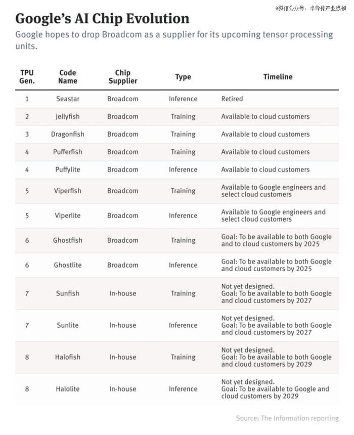 谷歌与博通合作,负责谷歌TPU的物理设计,本质上是基于谷歌的设计图纸开发芯片。此外,博通还负责监督台积电的芯片代工业务。自谷歌和博通开始合作以来,谷歌每两年左右发布新一代TPU。知情人士称,谷歌和博通把每一代TPU的性价比提高了至少50%。
