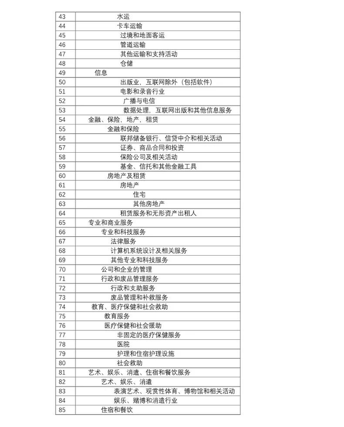 附录一美国GDP统计的行业分类(2023年9月28日前的老版)