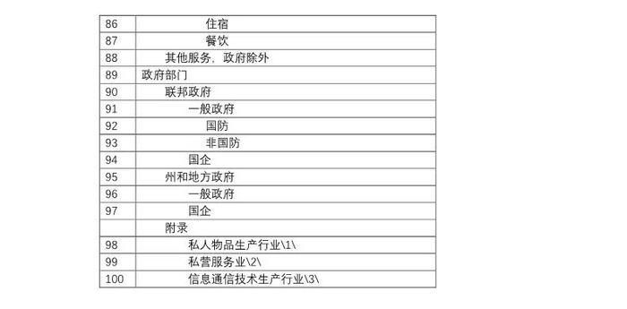 本文后面的附录给出了美国GDP统计的所有产业分类。参见本文“附录一 美国GDP统计的行业分类”。
