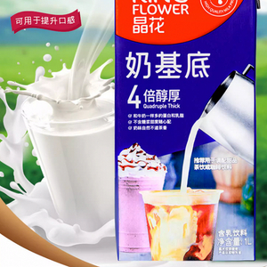 “基底乳”是一个专用于茶饮的称呼。围绕牛奶诞生的花样产品,视蛋白质含量差异,有些被定义为“含乳饮料”而不是牛奶本身。除了帮助茶、咖调节风味,这些厚乳本身也是饮料;一些厚乳的配料只包含生牛乳,它们与普通全脂牛奶在原料上区别不大。被消费者拿来直接喝,也就并不奇怪了。