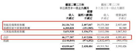 从业务层面来看,前三季度营收及净利润表现不佳,与智能设备业务集团和基础设施方案业务集团的具体表现有着莫大关系。