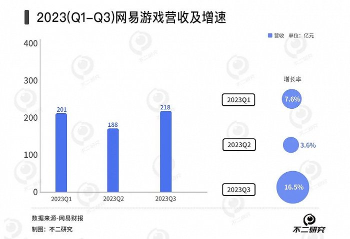 「不二研究」发现,网易游戏及相关增值服务业务增速显著高于前两季度:一季度,游戏及相关增值服务业务收入为201亿,同比增长7.6%;二季度为188亿,同比仅增长3.6%。