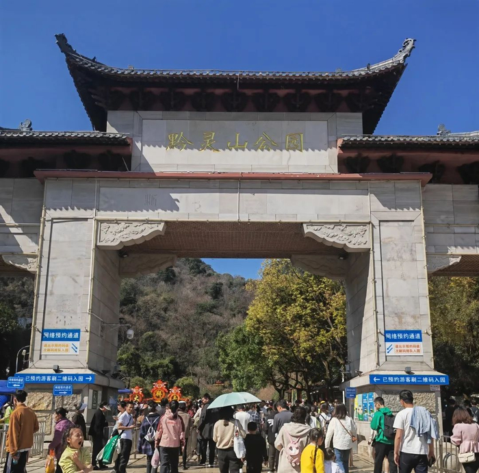 黔灵山公园门口的游客。