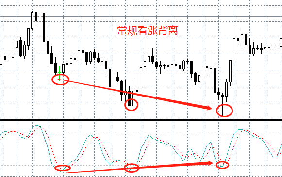 常规背离就是指随着价格的持续走低或走高,指标没有跟随,反而走高或走低。