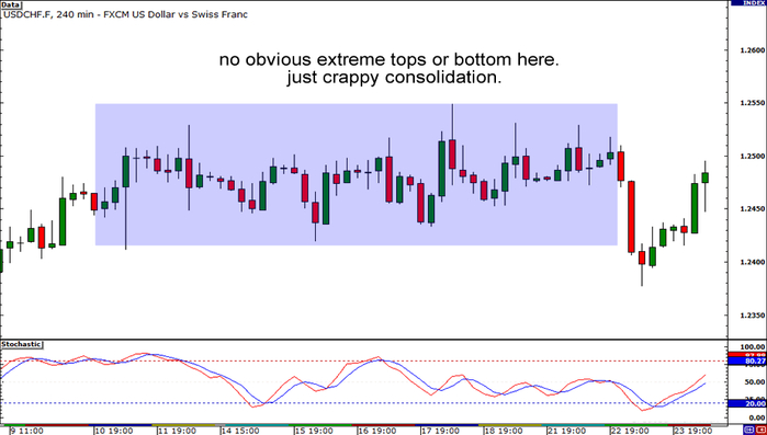 出现以上情况是背离信号的前提,如果市场一直处于没有明显高低点的震荡趋势,就不要在这种情况下寻找背离信号。