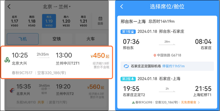 继东航、国航、南航后,铁路12306App近期与春秋航空股份有限公司联手共同打造了以石家庄为换乘枢纽的空铁联运网络,新增可售航线200余条,支持北京、衡水、保定、邢台、邯郸等经石家庄前往春秋航空国内各通航城市的双向空铁联运销售,为旅客提供更丰富的机票产品选择。