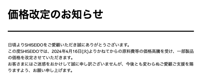 资生堂日本官网调价公告