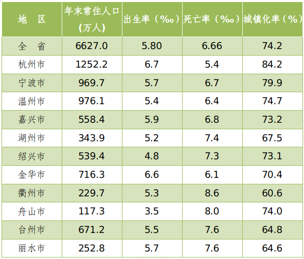 从自然增长情况来看,2023年浙江出生人口为38.3万人,死亡人口为44.0万人,自然增加人口为负5.7万人。出生率为5.80‰,死亡率为6.66‰,自然增长率为-0.86‰。