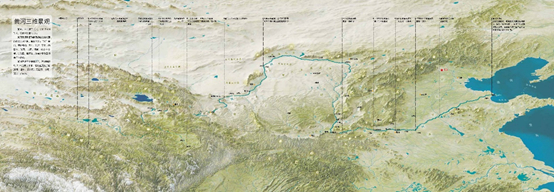 看这「黄河三维景观图」,叹一番“黄河落天走东海”的壮阔波澜,再看黄河流经线路,一目了然。