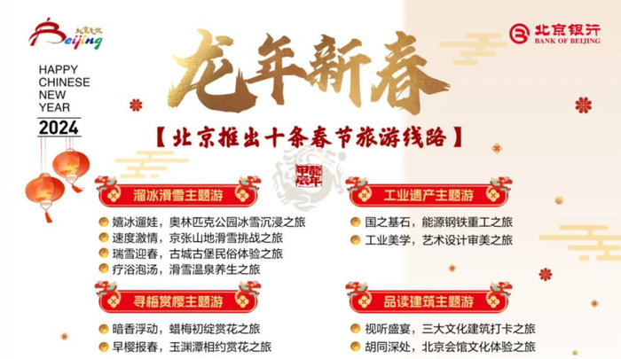 春节期间,北京市文化和旅游局统筹全市文旅资源,以“欢乐春节 畅享京城”为主题开展系列活动,聚焦亲子、家庭、研学等群体,联动北京银行推出“溜冰滑雪主题游”“工业遗产主题游”“寻梅赏樱主题游”“品读建筑主题游”四大主题,共涉及包括“嬉冰遛娃,奥林匹克公园冰雪沉浸之旅”“国之基石,能源钢铁重工之旅”“暗香浮动,腊梅初绽赏花之旅”“视听盛宴,三大文化建筑打卡之旅”等十条旅游线路,欢迎市民、游客前往游玩。其中,品读建筑线路串联城市副中心三大文化建筑等文旅打卡地标,溜冰滑雪线路推出“冰雪+文旅”主题玩法,为市民、游客假日出行提供丰富选择。