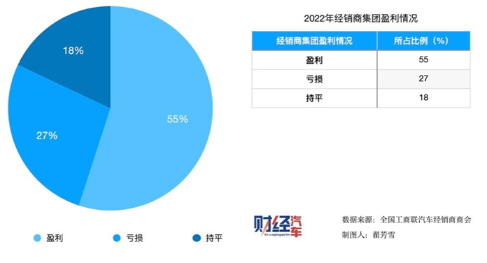 财经汽车与出行研究中心自全国工商联汽车经销商商会处获悉,有高达60%的4S店经营亏损。相较于单一投资的4S店,成规模的汽车经销商集团盈利相对较好,但也仅有55%的集团处于盈利状态。此外,合资品牌经销商的亏损情况高于豪华和自主品牌。