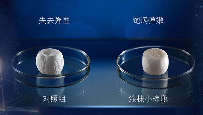 涂抹清水的面团 VS 涂抹了小棕瓶精华的面团,半小时后保湿变化肉眼可见~