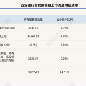 西安银行10.44亿股首发限售股周五解禁,超99%集中于三大股东!年内这些银行还有大额限售股将上市流通
