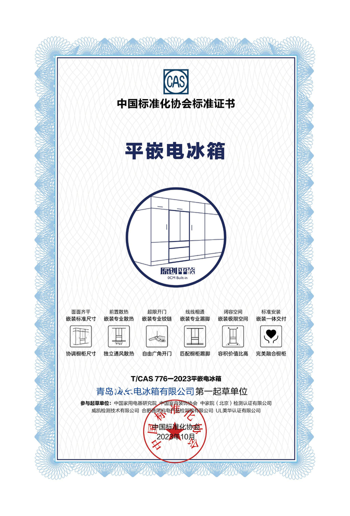 纵观冰箱行业,上一个划时代意义的标准是2022年的《自由嵌入式电冰箱》标准,它是全球首个家电、家居行业融合标准。而这两项行业标准,都是由海尔冰箱牵头制定,规范行业乱象的同时,也填补了行业标准空白。