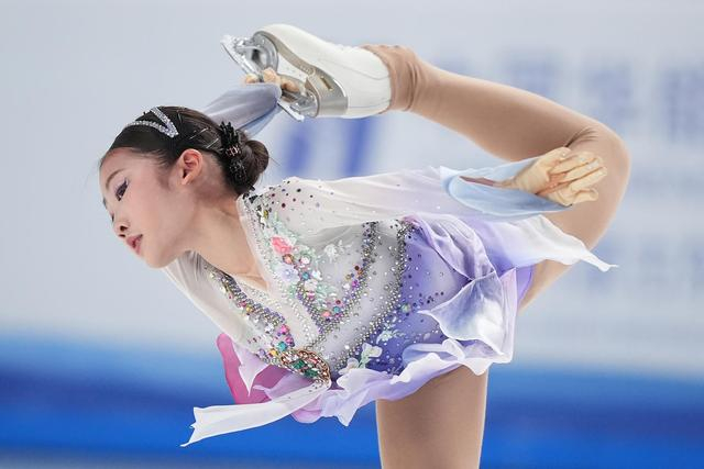 2024年2月25日,第十四届全国冬季运动会花样滑冰公开组女单自由滑比赛在内蒙古呼伦贝尔举行,四川队金书贤在自由滑项目中获得全场最高分122.57分,并以总成绩185.27分夺得冠军 图据视觉中国