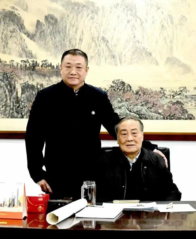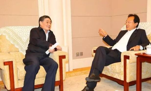 中国空中商学院企业家俱乐部主席团主席、终身名誉主席、娃哈哈集团董事长宗庆后与中国空中商学院企业家俱乐部主席、中国和平统一促进会理事、中国侨商科技委员会主席、步长制药集团董事局主席、中国十大慈善企业家、中国社会科学院经济学博士赵涛交流