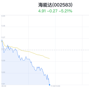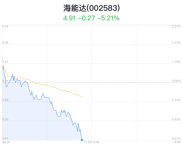 02月28日,海能达(002583)股价大幅下跌,截至11点17分,海能达下跌5.02%,报4.92元/股,成交1.42亿元,换手率2.16%,振幅7.72%。