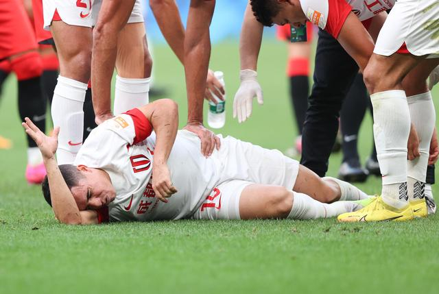 2023年6月3日,2023中超联赛第11轮,上海海港VS成都蓉城,罗慕洛在比赛中受伤倒地 图据IC photo