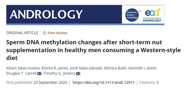 2020年,美国犹他大学医学院的研究人员在《男科学》杂志发表了一篇研究表明,食用混合坚果(杏仁、榛子和核桃)14周可以显著改善精子数量、生存能力、运动能力和形态。