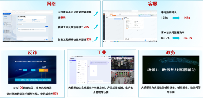 目前,中国联通行业大模型已在网络、客服、反诈、工业、政务等行业实现落地应用。