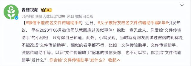 近日,“女子被好友改名文件传输助手骗5年”引发热议。