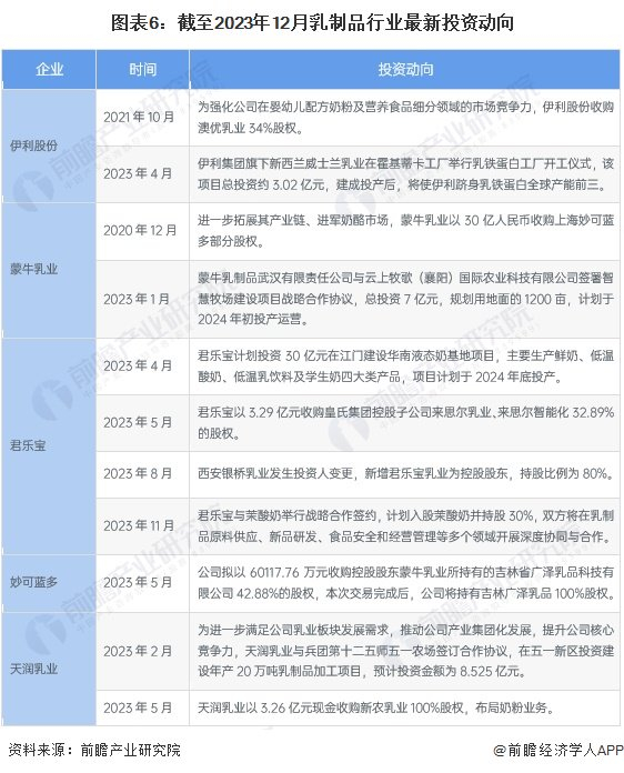 乳制品产业代表性企业最新投资动向