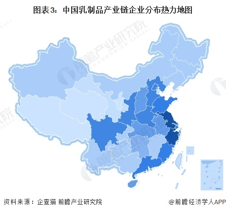 乳制品产业链区域热力地图:江苏、浙江企业密度最高