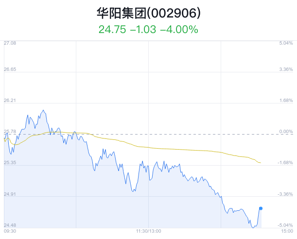 02月28日,华阳集团(002906)股价大幅下跌,截至14点26分,华阳集团下跌5.04%,报24.48元/股,成交3.53亿元,换手率2.65%。