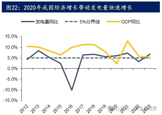 供给端长期资本开支不足,导致新增供给以产能核增为主,而需求端稳定增长,供需偏紧平衡。我国的新一轮产能周期开始于2016年供给侧改革以后,此时,我国煤炭行业已经历了2011年后由企业亏损引发的产能出清,供给侧改革在此基础上进一步出清,供需缺口出现。然而,当年国家又明确提出“不鼓励、不支持、不审批煤炭建矿”。我国煤炭行业在2016年至2020年之间经历了“边去产能边保供”的特殊境遇,在此情境下,煤矿投资的效率与意愿相对较低。2021年后,矿业投资又开始面对“双碳目标”和“增产保供”之间的冲突。另一方面,从需求端来看,尽管GDP和发电量增速等需求端指标相对于上一轮景气周期内的高增速均有所下降,但依然在5%左右保持较为稳定的增长,这也带动了煤炭消费量的稳定增长。