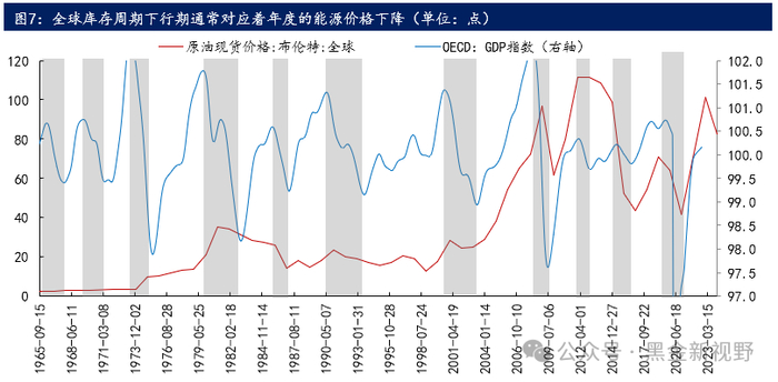 需求的波动会在1-2年内影响能源价格。从短周期(1-2年)的角度,能源价格和全球GDP大多是同向波动的。我们认为,从短周期的角度来看,库存周期是价格的重要影响因素之一,比产能格局和各国经济的长期增长动力的影响都更大。历史上库存周期下行持续时间通常在1-2年左右,通常对应着年度级的能源价格下降。