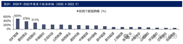(1)2020年4月至2022年9月,时间跨度长达2年零5个月,煤炭开采II(申万)指数从1176点涨到3531点,涨幅高达200.33%。