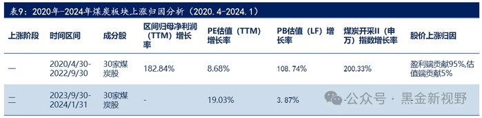 煤炭板块上涨归因:业绩和估值