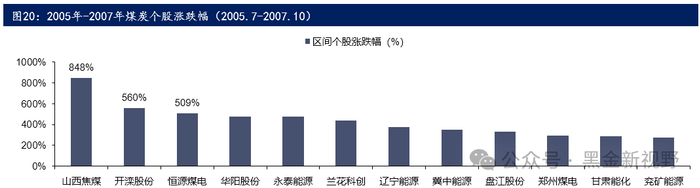 (2)2005.7-2007.10,时间跨度长达1年零3个月,煤炭开采II(申万)指数从712点涨到5505点,涨幅高达673%;