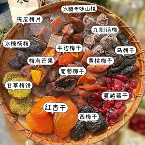 有杏有梅有酸有甜,黄桃梅子和葡萄梅子的新奇搭配不容错过,吃酸界经典组合陈皮梅片酸爽开胃,冰糖山楂和红杏干软糯耐嚼,葡萄梅子一口爆浆。
