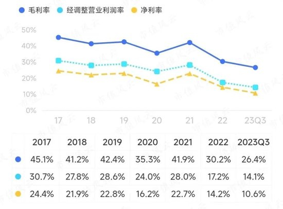 受此影响,2021年至2023年前三季度其净利率自22.7%下滑至10.6%,盈利能力大幅削弱。