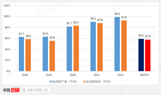 2022年为龙佰集团产能密集投放的年份,当年实现共计50万吨的增量。