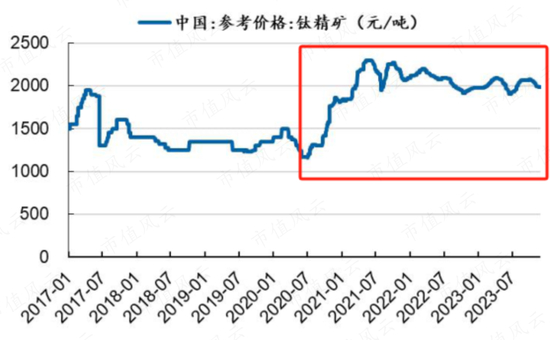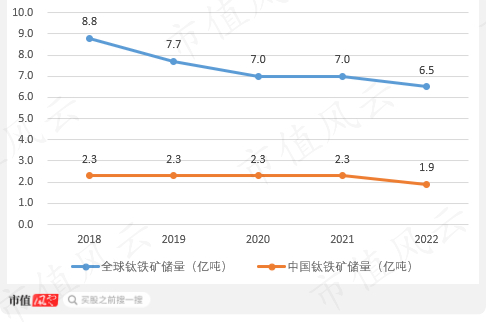 再来看成本端,与钛白粉不同的是,钛精矿的市场价格自2020年的大幅增长后一直维持高位,风云君推测其原因与2022年全球及国内钛矿储量进一步下行相关。