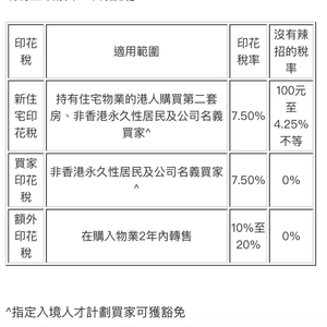 具体来看,额外印花税方面,此前购入物业2年内转售,需要缴纳成交价10%~20%的税费,本次撤辣之后,该项税费为零;买家印花税方面,此前,非香港永久性居民在港购房需要缴纳成交价7.5%的税费,本次“撤辣”之后,该项税费为零;住宅印花税方面,此前非香港永久性居民在港购房需要缴纳7.5%的税费,本次“撤辣”之后,仅需按照房产总价不同,缴纳100元~成交价4.25%的税费。