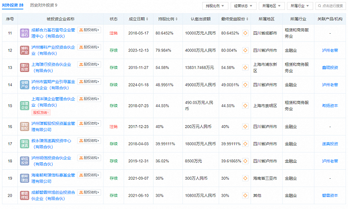 在此之后,五粮液基金先后联合川创投、成都产投、宜宾市科教产业投资集团等设立多只基金,如宜宾市高端成长型产业投资引导基金、四川创兴先进制造业投资有限公司、宜宾人才创新创业股权投资基金等。