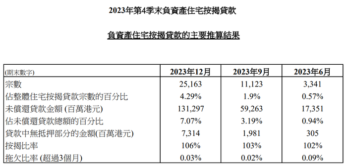 2023年12月,香港的负资产住宅按揭贷款宗数,突然上涨至2.5万宗,比9月份增加126%,创下19年来的新高。