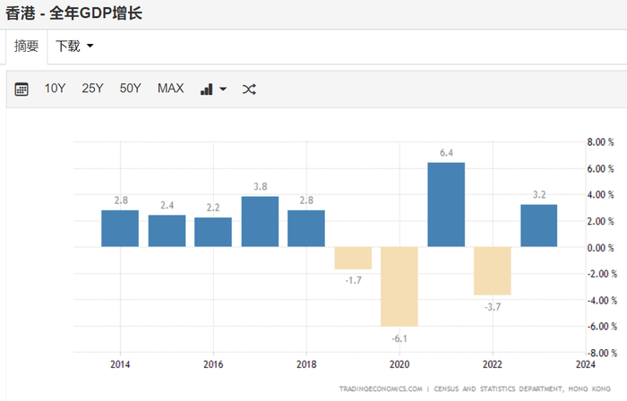 2023年的GDP增速,香港官方的预测值已经下调到3.2%。